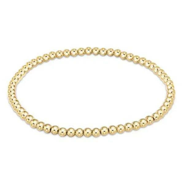 Your classic, reliable, and go-to bracelet. Made with 3mm, 14kt gold-filled beads Worry-free wear which means sleep, shower and sweat in it Hand beaded on high performance elastic for a slight stretch to easily roll on and off your wrist Measures: standard (6.25") Stacks well with all bracelets