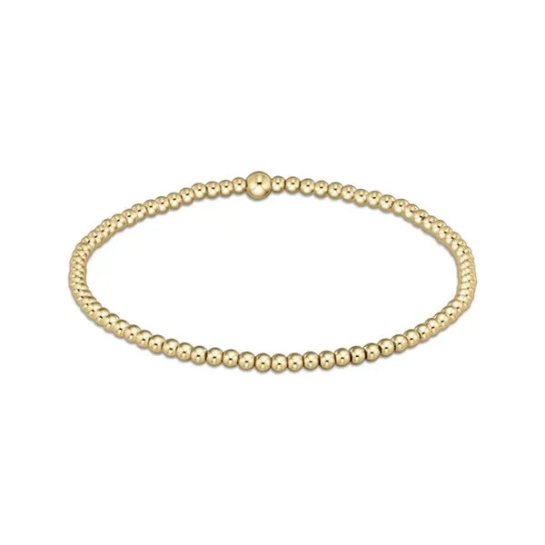 DESCRIPTION & DETAILS You're classic, reliable, and go-to bracelet. Made with 2.5mm, 14kt gold-filled beads Worry-free wear which means sleep, shower and sweat in it Hand beaded on high performance elastic for a slight stretch to easily roll on and off your wrist Measures: extends (7.25") Stacks well with all bracelets