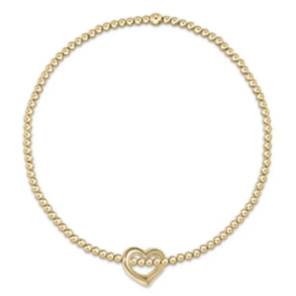 DESCRIPTION & DETAILS Meet our new love small gold charm. Made with 2mm, 14kt gold-filled beads Worry-free wear which means sleep, shower and sweat in it Hand beaded on high performance elastic for a slight stretch to easily roll on and off your wrist Measures: standard (6.25") Stacks well with all bracelets