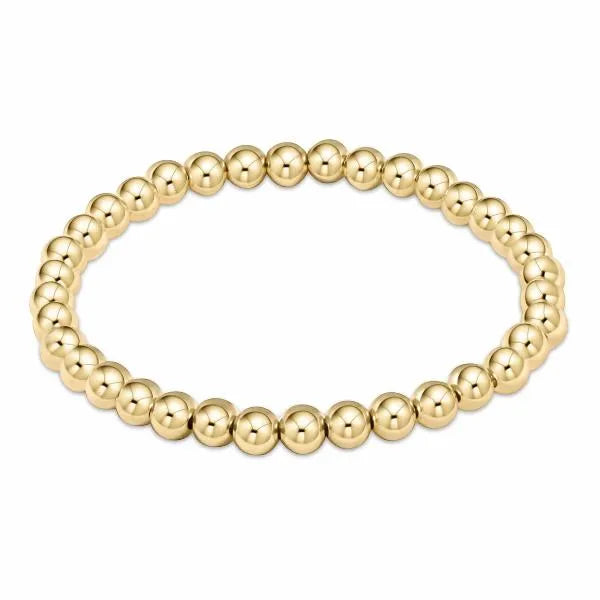 Your classic, reliable, and go-to bracelet. Made with 5mm, 14kt gold-filled beads Worry-free wear which means sleep, shower and sweat in it Hand beaded on high performance elastic for a slight stretch to easily roll on and off your wrist Measures: 6.25" Stacks well with all bracelets