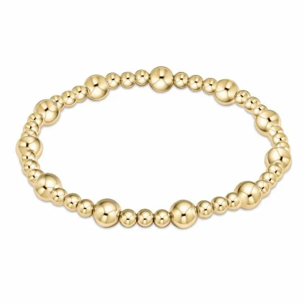 You will fall in love with this classic sincerity pattern 6mm bead bracelet! This bracelet is a classic gold beaded bracelet with alternating bead sizes. The larger bead size is a 6mm and the smaller bead size is a 3mm. Made with 6mm and 3mm, 14kt gold-filled beads Worry-free wear which means sleep, shower and sweat in it Hand beaded on high performance elastic for a slight stretch to easily roll on and off your wrist Measures: standard 6.25" Stacks well with all bracelets