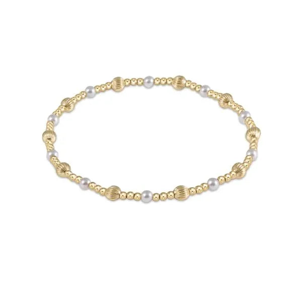DESCRIPTION & DETAILS Easy stacking. Made with a mix of 2mm, 14kt gold-filled beads, 4mm dignity 14kt gold-filled beads, and 3mm gemstones. Worry-free wear which means sleep, shower and sweat in it Hand beaded on high performance elastic for a slight stretch to easily roll on and off your wrist Measures 6.25" Stacks well with all bracelets