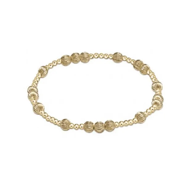 DESCRIPTION & DETAILS Anything is possible with hope. Made with 2.5mm, 14kt gold-filled beads and 5mm dignity 14kt gold-filled beads Worry-free wear which means sleep, shower and sweat in it Hand beaded on high performance elastic for a slight stretch to easily roll on and off your wrist Measures: extends (7.25") Stacks well with all bracelets