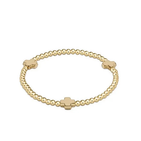 DESCRIPTION & DETAILS Remember where you came from. Made with 3mm, 14kt gold-filled beads and our signature cross gold-filled. enewton's first piece Worry-free wear which means sleep, shower and sweat in it Hand beaded on high performance elastic for a slight stretch to easily roll on and off your wrist Measures: standard 6.25" Stacks well with all bracelets