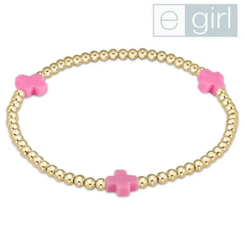 Egirl Bright Pink Signature Cross Bracelet Gold