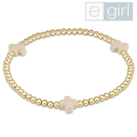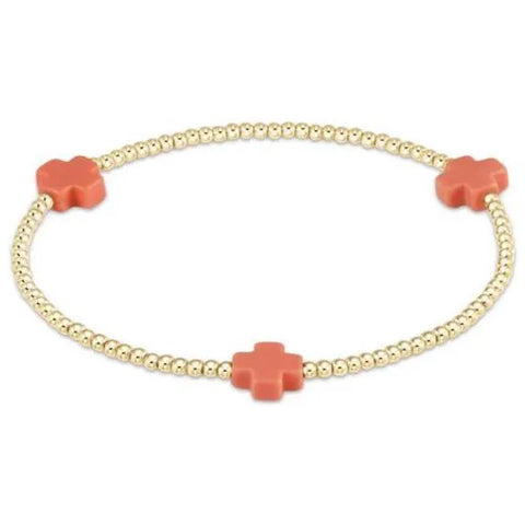 Signature Coral Cross Gold Pattern 2mm Bead Bracelet