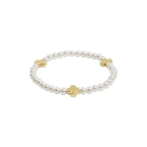 Signature Cross Pearl Pattern 4mm Bead Bracelet - Gold