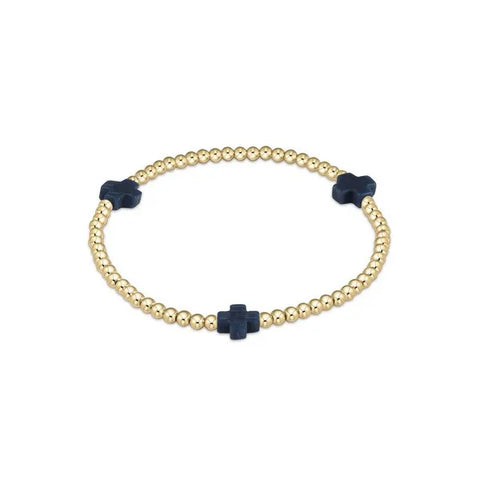 Signature Navy Cross Gold Pattern 3mm Bead Bracelet