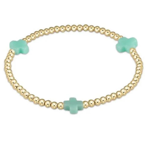 Signature Mint Cross Gold Pattern 3mm Bead Bracelet