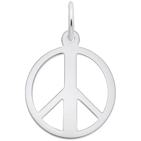 Peace Symbol Charm by Rembrandt Charms. The width is 5/8 of an inch. The Peace Symbol Charm brings spiritual awareness of peace and harmony to those wearing it. Keep love in balance with this charm. This jewelry piece can be placed on a necklace as a pendant or will be a wonderful addition as a charm for a Charm Bracelet. All Rembrandt Charms are available in either silver or gold. (FUN FACTS: Symbol was originally designed for the British nuclear disarmament movement.)