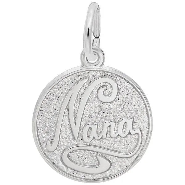 Rembrandt Nana Charm. Nana is embossed on the front and the back is smooth for engraving. (FUN FACTS: "Nana is short for grandmother, because it's easier for babies to pronounce".)