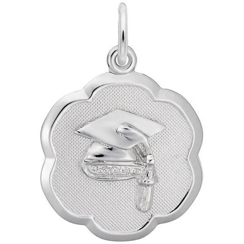 Rembrandt Grad Cap Scalloped Disc Charm. Represents a milestone in ones education, and new beginnings. Remember your graduation ceremony with the 3/4-inch Grad Cap Scalloped Disc Charm by engraving the back. This graduation jewelry makes...