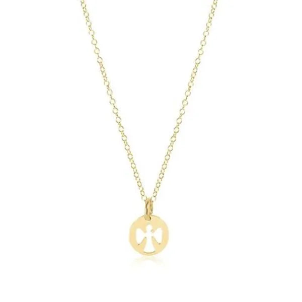 I believe in angels. Made on a 14kt gold-filled, 16-inch chain Worry-free wear, which means sleep, shower and sweat in it 14kt gold-filled 12mm guardian angel disc Layers great with all necklaces