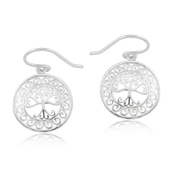 Round Scroll Frame Oak Tree Earrings18mm925 sterling silver