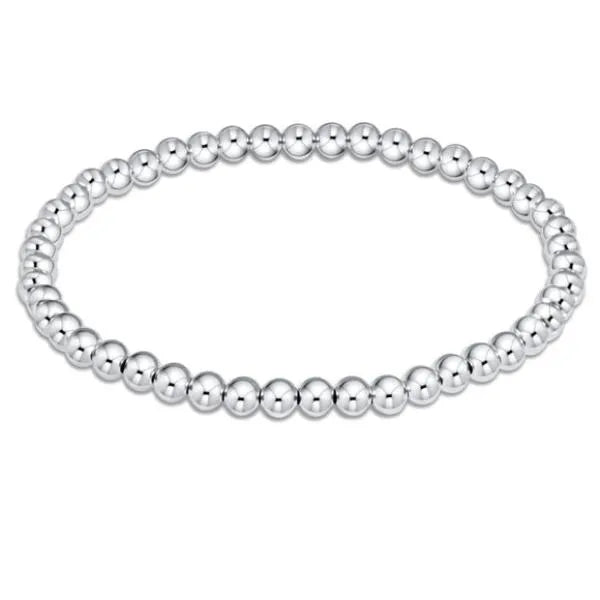 DESCRIPTION & DETAILS You're classic, reliable, and go-to bracelet, now in sterling silver! Made with 4mm, sterling silver beads Hand beaded on high performance elastic for a slight stretch to easily roll on and off your wrist Measures: extends 7.25" Stacks well with all bracelets Please visit our "Care" page for silver care instructions