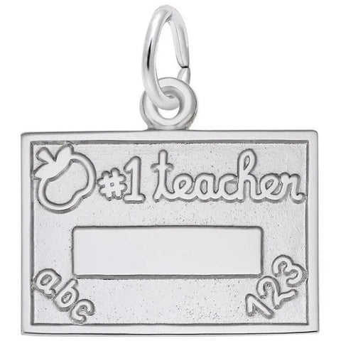 Number One Teacher Charm by Rembrandt Charms. The width is 5/8 of an inch. Personalize this Teacher Charm with her name on the front and additional engraving on the back. This item will leave a...