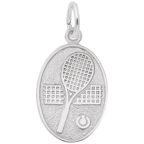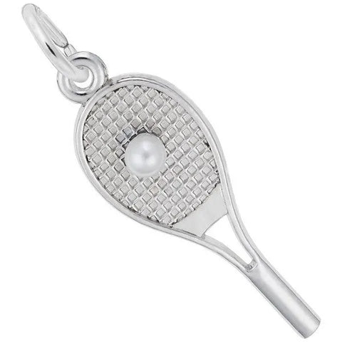 Rembrandt Tennis Racket Charm With Pearl. This charm is one of our longer charms. (FUN FACTS: "A heavier frame vibrates less, generates more power, and has a larger sweet spot".)