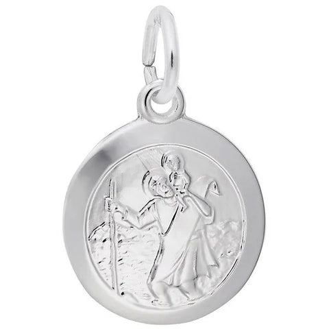 St Christopher Charm. Charm depicts a scene of a traveler and a child on his shoulders on front and is high polished on back. (FUN FACTS: "St. Christopher is the patron saint of travelers. His...