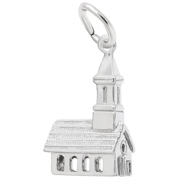 Rembrandt Church Charm. Bring the memories back with this three-dimensional 5/8-inch church charm of weddings, births, baptisms and communion there are so many things to celebrate. The Church jewelry makes a wonderful addition as a charm for a charm bracelet or can be placed on a necklace as a pendant. The entire collection is covered with a lifetime warranty backed by Rembrandt Charms. Our charm is available in 14k yellow gold, 14k white gold, 10k yellow gold, sterling silver or even gold plate over sterling silver. Rembrandt charms miniature works of art will help you recall special days and interests in your life, or those you love. (FUN FACTS: "Church is a Christian name given to a building of worship, Christian churches interior is often arranged in the shape of a cross".)