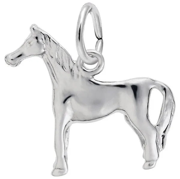 Rembrandt Standing Horse Charm. Saddle your unbridled enthusiasm for this three-dimensional 3/4-inch standing horse charm. Designed for equestrians and animal lovers. This horse jewelry makes a wonderful addition as a charm for a charm bracelet or can be placed on a necklace as a pendant. The entire collection is covered with a lifetime warranty backed by Rembrandt Charms. Our charm is available in 14k yellow gold, 14k white gold, 10k yellow gold, sterling silver or even gold plate over sterling silver. Rembrandt charms miniature works of art will help you recall special days and interests in your life, or those you love. (FUN FACTS: "The horse is a symbol of strength n power; energy n freedom".)
