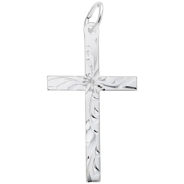 Large Flared Cross Charm by Rembrandt Charms. The height is 1 inch. Keep your faith close with this Large Flared Cross Charm. The beautiful inscription will illuminate your whole collection. This religious charm can be placed on a necklace or will be a wonderful addition to a Charm Bracelet. All Rembrandt Charms are available in either silver or gold. (FUN FACTS: "Symbol of Christianity".)