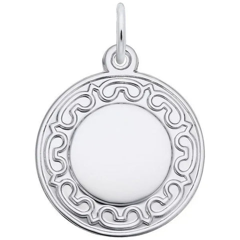 Rembrandt Ornate Round Disc Charm. Engrave a memorable moment or anniversary on this High Polished Ornate Round Disc Charm. The perfect addition to any personal story. Diameter is 3/4 inches. This disc charm can be...