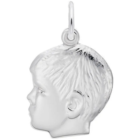 Rembrandt boys head charm. Our elevated silhouette makes a delightful heirloom. Dedicate this 3/4-inch boy's head charm to your son or grandson. Show them how much you care with a personal engraving on the back....