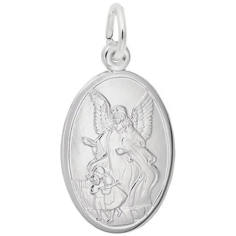 Rembrandt Guardian Angel Charm. The front of this charm depicts an Angel protecting a child, the back can be engraved.